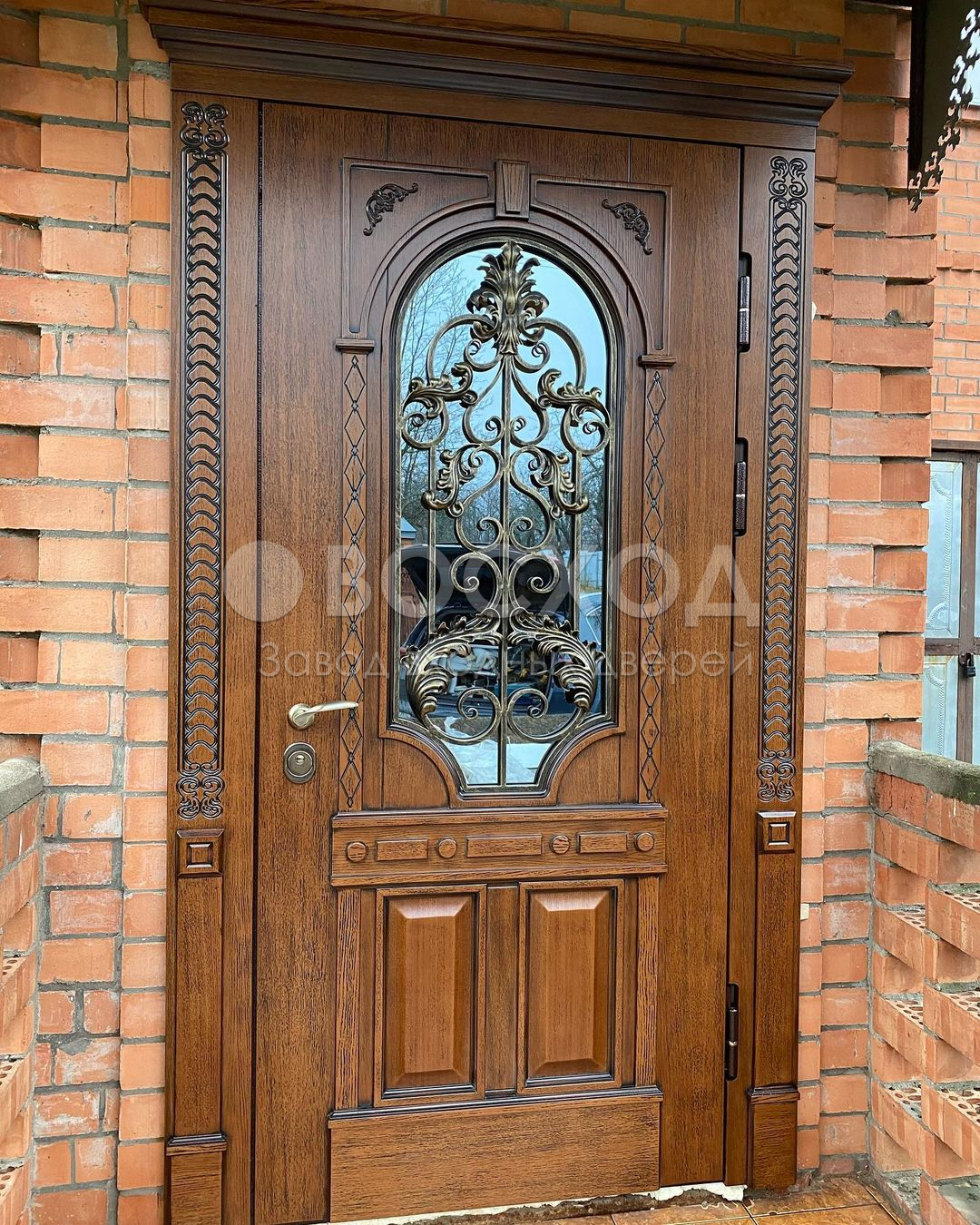 Поскольку главное назначение входных дверей в коттедж – защита жилья, производитель предлагает усилить конструкцию броненакладками, специальными петлями и надёжными замковыми механизмами.