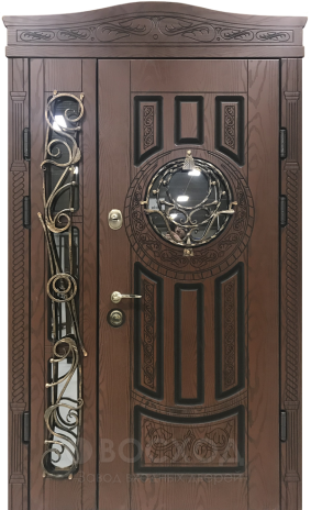 Металлическая основа с профилем 50х25 мм и стальным листом в 2 мм делает конструкцию прочной и долговечной, а ребра жесткости придают дополнительную устойчивость. Снаружи и внутри дверь оформлена панелями из натурального дерева, благодаря чему выглядит не только надежно, но и по-настоящему представительно. Красивая входная дверь в коттедж №2 сочетает в себе солидность металлической защиты и уют теплых древесных оттенков, что особенно ценят владельцы загородных домов. Два контура уплотнения защищают помещение от сквозняков, а при желании можно добавить тепло- и шумоизоляцию. За безопасность отвечают два замка турецкого производства Kale Kilit, сувальдный и цилиндровый, каждый с системой из трех ригелей. При необходимости замки можно заменить на модели премиального уровня или даже электронные варианты, а дополнительно установить зеркало, стеклопакет или кованые элементы. Эта дверь уверенно сочетает функциональность, престиж и возможность индивидуальной доработки.