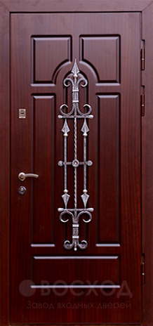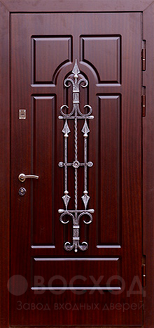Для загородного дома или коттеджа важно, чтобы входная дверь не только защищала, но и подчеркивала стиль фасада. Здесь играет роль каждая деталь: ковка добавляет изысканности, а отделка из МДФ ПВХ сохраняет привлекательный внешний вид даже при воздействии влаги и перепадов температур. Панели устойчивы к механическим повреждениям, не выгорают и долго остаются аккуратными. Особое внимание заслуживает дверь с терморазрывом и ковкой №18: в её конструкции предусмотрен разрыв не только в коробке, но и в полотне, благодаря чему холод не проникает внутрь, а тепло не уходит наружу. Тройной магнитный контур уплотнения и изоляция из пенопласта повышенной плотности создают дополнительный барьер для шума и сквозняков. Цельногнутый металл толщиной 1,5 мм, противосъёмные штыри и два надежных замка российского производства делают такую дверь серьёзной защитой, а декоративное исполнение превращает её в достойное украшение фасада.