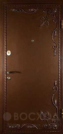 Дверь с ковкой металлическая №3 сочетает в себе строгость стали и декоративную изысканность ручной работы. Её выбирают как для квартир, так и для частных домов, когда хочется совместить надежную защиту и выразительный внешний облик. Кованые элементы придают конструкции индивидуальность и подчёркивают статус хозяев, превращая вход в эффектный акцент. Снаружи дверь покрыта порошковой окраской, устойчивой к осадкам, выгоранию и мелким механическим повреждениям, что обеспечивает долговечность и сохранение первозданного вида. Внутренняя отделка выполнена из ламинированных панелей, которые создают уютную атмосферу и легко вписываются в современный интерьер. Каркас и полотно собраны из профильной трубы с листом стали толщиной 2 мм, усиленным рёбрами жёсткости, поэтому дверь не боится нагрузок и попыток взлома. Два контура уплотнения обеспечивают плотное прилегание, защищая дом от сквозняков и уличного шума.
