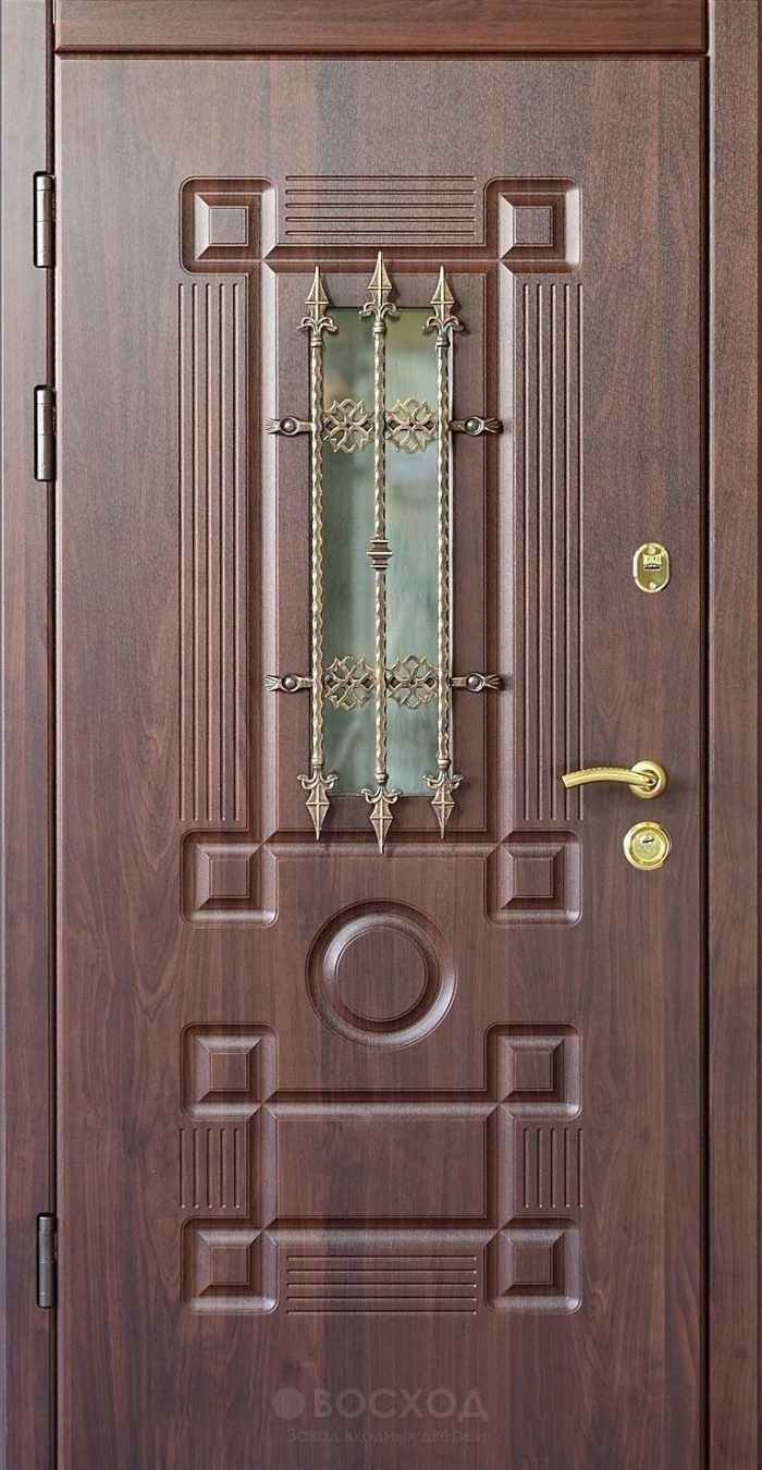 Дверь с терморазрывом и ковкой №7 — это прочное и стильное решение для частных домов и коттеджей. Внешняя и внутренняя отделка из натурального дерева придают изделию роскошный и натуральный вид, который подчеркнет любой интерьер. Элементы ковки добавляют индивидуальности и эстетической ценности. Конструкция двери выполнена из цельногнутой оцинкованной стали толщиной 1,5 мм, а усиленные ребра жесткости из профильных труб обеспечивают долговечность и надежность. Терморазрыв в коробке и полотне эффективно сохраняет тепло в доме и защищает от внешних температурных колебаний. Пенопласт повышенной плотности служит отличной шумо- и теплоизоляцией, а тройной контур магнитного уплотнения гарантирует герметичность и защиту от влаги. В комплекте предусмотрены противосъемные блокираторы для дополнительной безопасности.