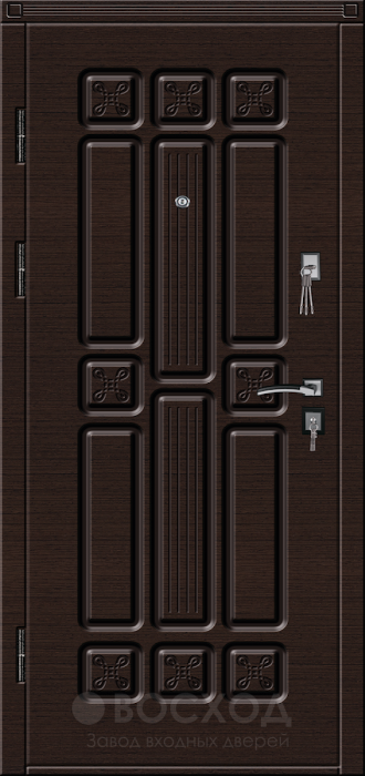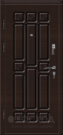 Загородный дом диктует особые требования к входной конструкции: она должна быть крепкой, сохранять тепло и при этом выглядеть достойно. Эта модель изготовлена из цельногнутой оцинкованной стали толщиной 1,5 мм с усилением профильными трубами и противосъёмными штырями, что гарантирует прочность и защиту. Внутренний слой из плотного пенопласта работает как эффективный тепло- и шумоизолятор, а тройной магнитный контур делает полотно герметичным. Ключевая особенность — наличие терморазрыва в коробке и полотне, исключающего промерзание и появление конденсата, что особенно важно для уличной эксплуатации. Отделка панелями МДФ с ПВХ-покрытием устойчива к влаге и механическим воздействиям, при этом долго сохраняет презентабельный вид. Входная дверь с терморазрывом для частного дома №42 объединяет надёжность металла и комфорт, предлагая владельцу и тепло, и уверенность в безопасности.