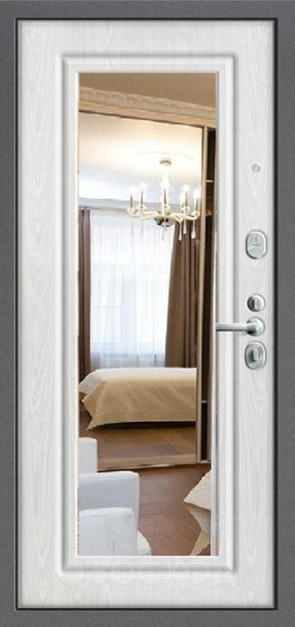 Прочная стальная конструкция с рёбрами жёсткости и блокираторами делает эту модель надёжной защитой для дома, квартиры или офиса. Внешняя поверхность покрыта молотковым напылением, которое отличается высокой устойчивостью к механическим повреждениям и долго сохраняет аккуратный вид, а изнутри дверь оформлена МДФ-накладкой, добавляющей тепла и уюта интерьеру. Элегантная дверь с зеркалом №10 (Шагрень белый глянец / белый матовый) выделяется сочетанием изысканного стиля и функциональности: зеркало на полотне не только визуально расширяет пространство, но и практично в повседневном использовании. Два контура уплотнителя защищают от сквозняков и посторонних запахов, при необходимости возможно усиление теплоизоляции. Для безопасности установлены два замка — сувальдный Просам и цилиндровый Мосрентген, проверенные временем решения российского производства. Возможность выбора отделки и размеров позволяет адаптировать дверь под любые требования, сохранив её элегантный характер.