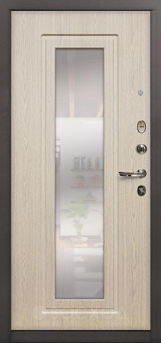 Входная металлическая дверь Лумбер в оттенке лиственницы с бежевым акцентом сочетает в себе надежность стали и теплую эстетику натуральной текстуры. Такое оформление выглядит благородно и органично как в частном доме, так и в квартире или офисе, создавая впечатление спокойного, но при этом респектабельного интерьера. Зеркальная вставка визуально расширяет пространство и добавляет свет, что особенно ценно для прихожих. Каркас и полотно выполнены из прочной профильной трубы, а стальной лист толщиной 2 мм обеспечивает устойчивость к внешним воздействиям и попыткам взлома. Два контура уплотнения с резиновыми вставками защищают от сквозняков, а при желании дверь можно дополнить теплоизоляцией. Отделка из МДФ долговечна, устойчива к царапинам и не теряет привлекательности со временем. За безопасность отвечают два замка российского производства — сувальдный Просам и цилиндровый Мосрентген, каждый с тремя ригелями, что гарантирует уверенную защиту жилья.
