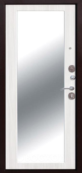 Белый цвет в оформлении входной двери всегда ассоциируется с чистотой и лёгкостью, а большое зеркало на полотне добавляет интерьеру глубины и визуально расширяет пространство прихожей. Такая конструкция уместна и в загородном доме, и в городской квартире, и даже в офисе, где важен респектабельный внешний вид. Стальная дверь с накладкой белого цвета и зеркалом на всё полотно сочетает в себе строгую надёжность металла и изысканность декора. Основа выполнена из профильной трубы и листа стали толщиной 2 мм, усилена рёбрами жёсткости и блокираторами. Два контура резинового уплотнителя защищают от сквозняков и посторонних запахов, а при желании конструкцию можно дополнить утеплителем. МДФ с ПВХ-покрытием устойчив к царапинам, не боится перепадов температуры и долго сохраняет первоначальный вид. За безопасность отвечают два замка российского производства — сувальдный Просам и цилиндровый Мосрентген, а при желании их можно заменить на более современные или даже смарт-модели.