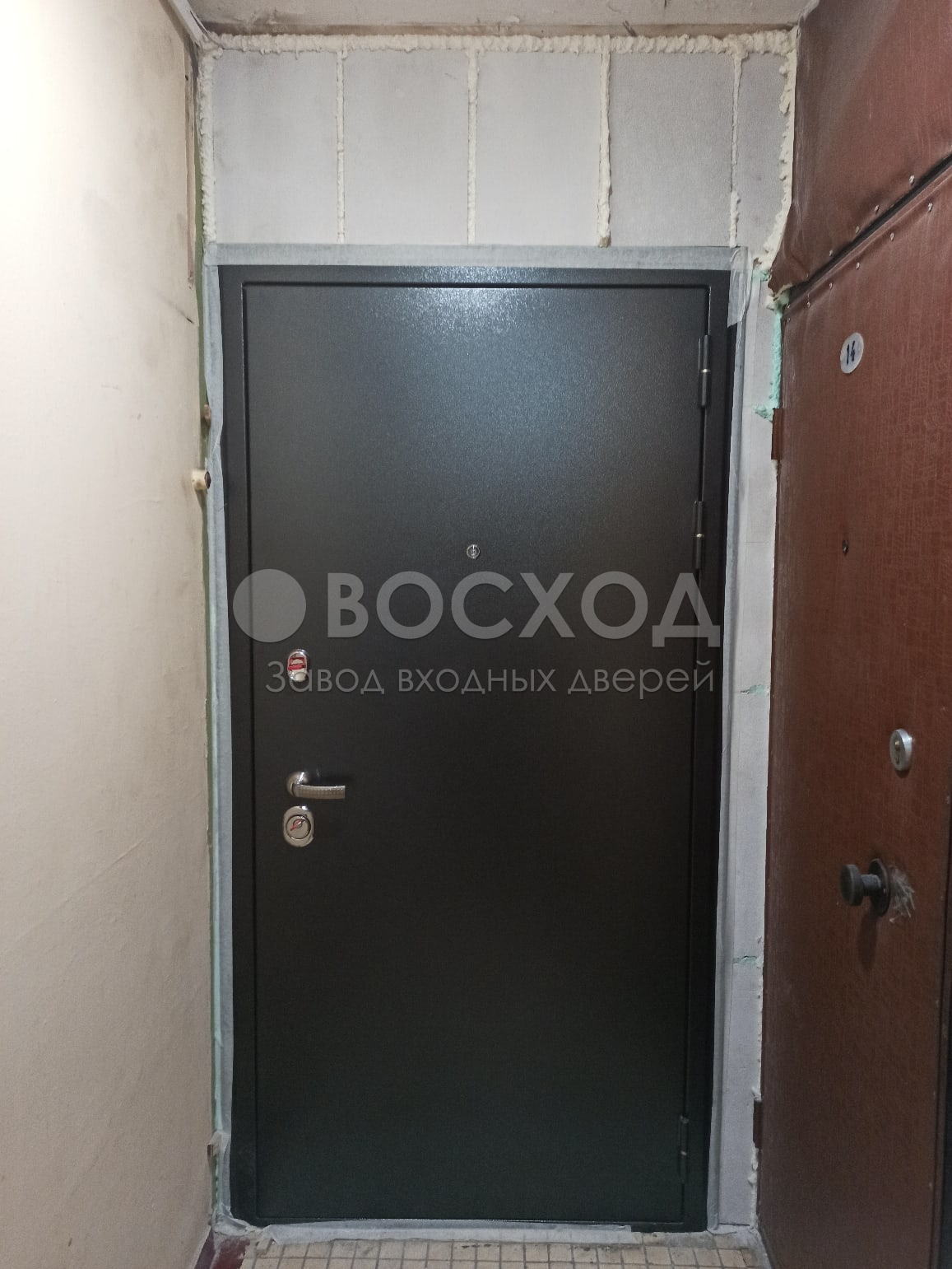 Эта модель создана для тех, кто хочет совместить надежность конструкции и удобство повседневного использования. Дверь с зеркалом с 2-я ребрами жесткости №69 изготовлена из стального листа толщиной 2 мм и усилена профильными трубами, что гарантирует прочность и устойчивость к нагрузкам. Внешняя поверхность оформлена молотковым напылением, которое не только защищает металл от коррозии и мелких повреждений, но и придает двери оригинальный фактурный вид. Внутри установлены панели МДФ с ПВХ-покрытием — материал, отличающийся долговечностью и простотой ухода. Зеркальная вставка делает прихожую более просторной и удобной, совмещая функциональность с элементом декора. Два контура резинового уплотнения защищают помещение от сквозняков, а при желании можно добавить шумо- или теплоизоляцию. Такая дверь органично подходит и для частного дома, и для квартиры, и для офиса.