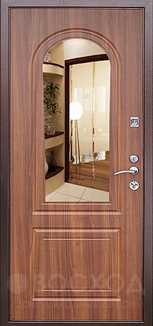 Металлическая конструкция с прочным стальным полотном и рёбрами жёсткости надёжно защищает помещение, а два замка разных типов обеспечивают дополнительный уровень безопасности. Внутренняя дверь с овальным зеркалом №9 выделяется из привычных моделей благодаря декоративному элементу: зеркало встроено так, чтобы не только украшать полотно, но и быть полезным в быту. Отделка плитами МДФ с обеих сторон делает поверхность более устойчивой к царапинам и лёгкой в уходе, при этом материал хорошо сохраняет внешний вид даже при частом использовании. Два контура резинового уплотнителя помогают отсечь лишние звуки и запахи, а при необходимости дверь можно дополнительно утеплить. Возможность изготовления в любом размере и вариативность отделки позволяют интегрировать её как в жилой интерьер, так и в офисное пространство, где ценят практичность и аккуратный дизайн.