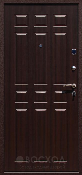 Эта модель создана для тех, кто ценит баланс между надёжностью и универсальностью. Прочная стальная конструкция с листом металла толщиной 2 мм и рёбрами жёсткости гарантирует долговечность и устойчивость к нагрузкам, а два замка российского производства — сувальдный «Просам» и цилиндровый «Мосрентген» — отвечают за высокий уровень безопасности. Внутри и снаружи используется МДФ с ПВХ-покрытием, стойким к царапинам и перепадам температуры, благодаря чему дверь долго сохраняет привлекательный внешний вид даже в условиях активной эксплуатации. Два контура резинового уплотнителя защищают от сквозняков, а при необходимости дверь можно дополнить утеплителем. Именно Надежная входная дверь №15 легко впишется в интерьер квартиры, офиса или частного дома, сохраняя при этом функциональность и возможность персонализации: от декоративных вставок и зеркала до современных электронных замков и систем видеодомофона.