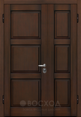 Широкий проём требует особого решения, и именно для таких случаев создана двустворчатая дверь входная №15. Она сочетает солидный внешний вид с высокой функциональностью: большие створки позволяют свободно заносить мебель и технику, а прочный каркас из профильной трубы со стальным листом толщиной 2 мм гарантирует долговечность и устойчивость к попыткам взлома. Внутри и снаружи поверхность облицована панелями МДФ с покрытием ПВХ, которое надёжно защищает дверь от царапин и сколов, сохраняя аккуратный вид даже при активной эксплуатации. Два замка — сувальдный Просам и цилиндровый Мосрентген — работают в паре, усиливая уровень защиты. Два контура уплотнения предотвращают сквозняки, а при необходимости дверь может быть дополнительно утеплена. Такой вариант объединяет практичность и стиль, подчёркивая статус дома или квартиры с первых секунд знакомства.