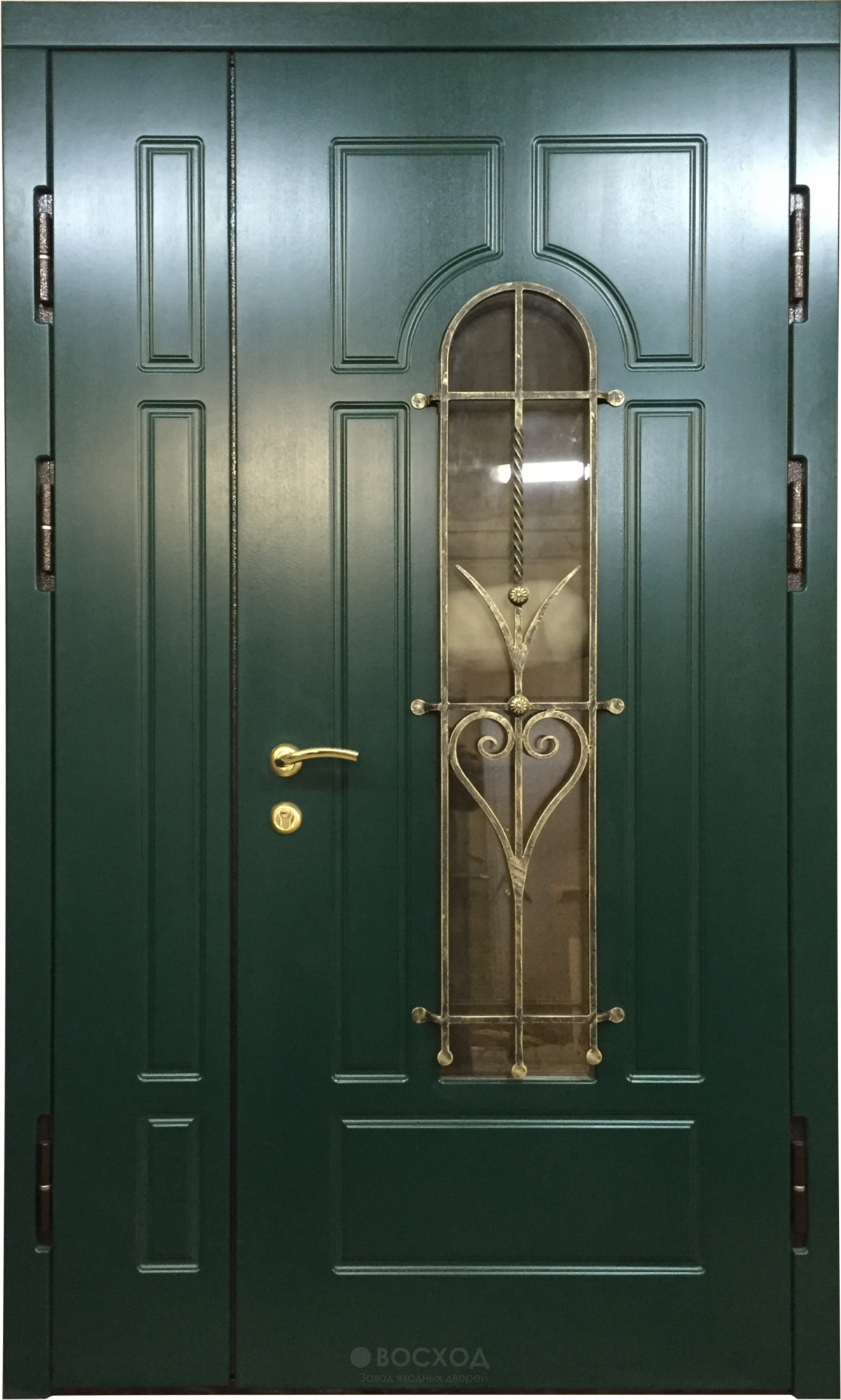 Кованые элементы всегда придают входной группе выразительность, и двустворчатая дверь с ковкой №5 прекрасно демонстрирует этот эффект. Солидное металлическое основание выполнено из профильной трубы и листа стали толщиной 2 мм, дополненного рёбрами жёсткости и блокираторами, что обеспечивает прочность и безопасность. Две створки делают дверь удобной при эксплуатации, особенно в частных домах с широкими проёмами. В отделке использованы панели МДФ с покрытием ПВХ — практичный материал, устойчивый к мелким повреждениям и сохраняющий презентабельный вид в течение долгих лет. Кованый декор вносит индивидуальность и подчеркивает статус владельцев, превращая функциональную конструкцию в выразительный архитектурный элемент. Дополнительно можно оснастить дверь утеплителем, стеклопакетом, зеркалом или даже видеодомофоном, сделав её не только красивой, но и максимально удобной в использовании.