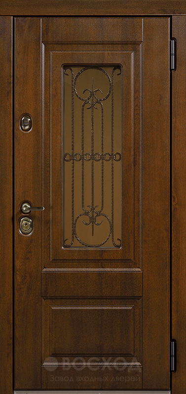 Входная дверь с МДФ и ковкой №24 — это удачное сочетание декоративной выразительности и надежности. Панели из МДФ с покрытием ПВХ обеспечивают устойчивость к царапинам и влаге, легко переносят перепады температур и сохраняют свежий вид долгие годы, а ковка превращает полотно в яркий элемент фасада, подчеркивающий индивидуальность хозяев. Внутри скрывается прочный металлический каркас из профильных труб и лист стали толщиной 2 мм, усиленный ребрами жесткости и блокираторами. Два контура уплотнения обеспечивают плотное прилегание и защиту от сквозняков, а при необходимости дверь можно оснастить дополнительной шумо- и теплоизоляцией. Изготавливается в любом размере, что позволяет точно вписать конструкцию в проем коттеджа или загородного дома.