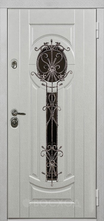Фото стальная дверь Входная дверь с МДФ и ковкой №24 с отделкой МДФ ПВХ