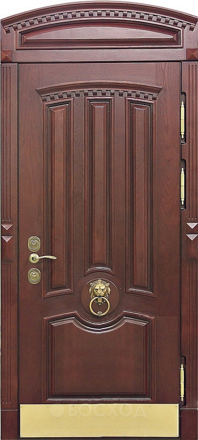 Арочная форма входа всегда смотрится эффектно и придает фасаду особый шарм, будь то классический коттедж или современный загородный дом. В основе конструкции — прочный каркас из профильных труб и лист стали толщиной 2 мм, дополненный ребрами жесткости и блокираторами, чтобы красота сочеталась с надежностью. Эстетическая арочная дверь №4 отделана массивом дуба с обеих сторон, благодаря чему полотно выглядит солидно и дорого, при этом древесина устойчива к царапинам и механическим нагрузкам. Два контура уплотнения защищают от сквозняков, а опциональная тепло- и шумоизоляция превращает конструкцию в комфортный барьер от уличного шума. Дверь комплектуется итальянскими замками Cisa — цилиндровым и сувальдным, каждый со своим набором ригелей, что гарантирует высокий уровень безопасности. Возможность выбора направления открывания, установка умных замков, декоративных элементов или видеодомофона позволяют превратить этот вход в индивидуальное решение, подчеркивающее статус хозяев.