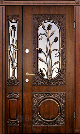 Фото стальная дверь Дверь с кованной решёткой №356 с отделкой Массив дуба