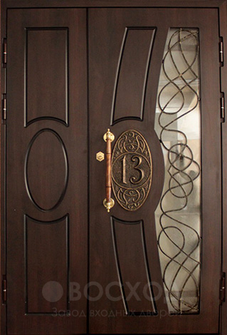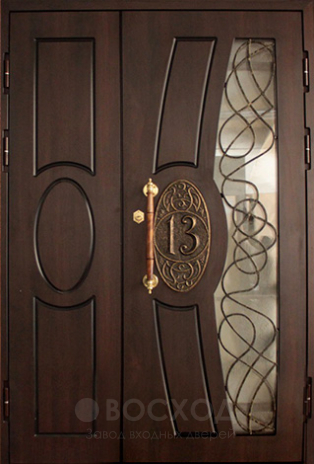 Входная уличная дверь со стеклом в дом №109 сочетает в себе надёжность металлоконструкции и элегантность натурального дерева. Панели из массива придают фасаду солидный вид и хорошо выдерживают повседневные нагрузки, сохраняя текстуру и форму даже при перепадах температуры. Основой служит каркас из профильной трубы с листом стали толщиной 2 мм, дополненный рёбрами жёсткости и блокираторами для повышения прочности. Стеклянная вставка делает дверь визуально легче, наполняет прихожую естественным светом и добавляет парадности входу. Два контура резинового уплотнителя препятствуют сквознякам, а при необходимости можно дополнить конструкцию утеплителем для круглогодичного комфорта. Такая дверь создана для домов и коттеджей, где ценят не только безопасность, но и выразительный архитектурный облик.