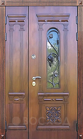 Фото стальная дверь Дверь с фрезеровкой орех №331 с отделкой Массив дуба