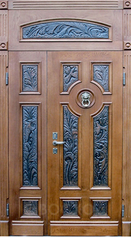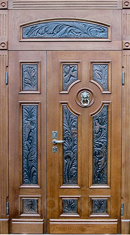 Фото стальная дверь Дверь с фрезеровкой орех №331 с отделкой Массив дуба