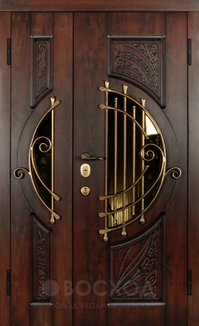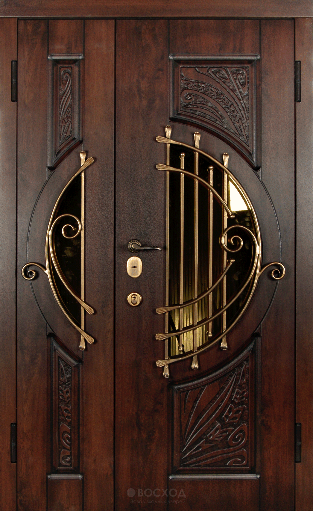 Входная дверь в коттедж двустворчатая №329 создаёт ощущение монументальности и подчеркивает статус дома ещё на пороге. Такой формат часто выбирают владельцы коттеджей и частных домов, где важно не только удобство прохода, но и выразительный фасад. Две створки добавляют торжественности, а массив дуба в отделке с обеих сторон гарантирует долговечность и устойчивость к износу. Натуральное дерево не теряет привлекательности со временем, а благодаря защитным покрытиям сохраняет первоначальный цвет и текстуру, противостоя влаге и механическим нагрузкам. Внутренняя конструкция из профильных труб и листа стали толщиной 2 мм усиливает прочность, а блокираторы и два контура уплотнения делают дверь надёжной и устойчивой к сквознякам. Дополнительно можно оснастить полотно шумо- и теплоизоляцией, чтобы повысить комфорт внутри дома.