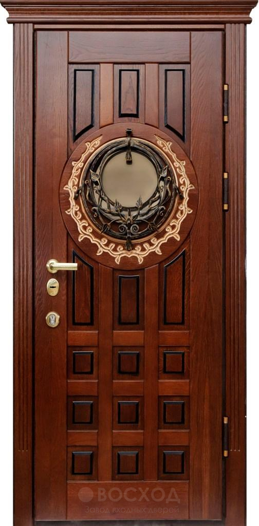 Однопольная дверь с филёнкой №358 создана для ценителей классики и добротного стиля. Её строгая форма в сочетании с натуральным массивом дерева придаёт входу в коттедж или загородный дом солидность и подчеркнутую основательность. Такая отделка не только эстетична, но и отличается прочностью, устойчивостью к мелким механическим повреждениям и долговечностью – дерево долго сохраняет свой естественный вид и теплоту фактуры. За изысканным внешним обликом скрывается надежная конструкция: стальной каркас и полотно из профильной трубы с листом металла толщиной 2 мм, дополненные ребрами жёсткости и блокираторами. Двойной контур уплотнения защищает от сквозняков и влаги, а при необходимости дверь можно дополнительно оснастить утеплителем. Такой вариант становится не просто элементом защиты, а достойным архитектурным акцентом для парадного входа.