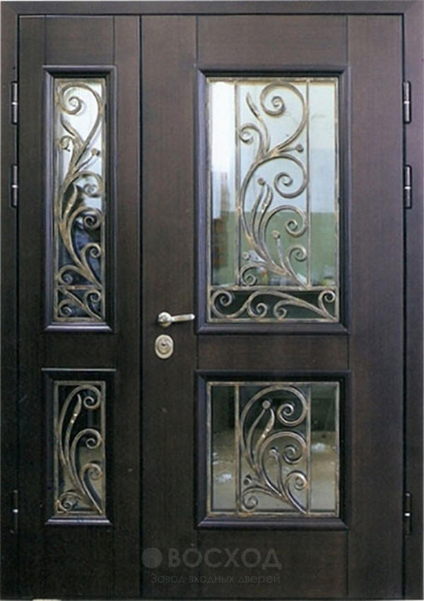 Для загородного дома важна не только надежность, но и выразительность входа. Именно поэтому здесь ценится сочетание стали и натурального дерева: металл формирует жесткий каркас с листом толщиной 2 мм и рёбрами жесткости, а деревянные панели придают двери теплоту и представительный вид. Распашная дверь уличная со стеклом №56 гармонично вписывается в архитектуру коттеджей, позволяя впустить свет через стеклянную вставку и подчеркнуть индивидуальность фасада. Конструкция оснащена итальянскими замками Cisa цилиндрового и сувальдного типа, что обеспечивает высокий уровень защиты. Два контура резинового уплотнения защищают от сквозняков, а при желании можно добавить утеплитель, зеркало, кованые элементы или даже интегрировать видеодомофон. Такая дверь легко адаптируется под конкретный проект, а направление и способ открывания выбираются по предпочтению хозяев.