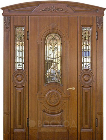 Фото стальная дверь Арочная парадная дверь №124 с отделкой Массив дуба
