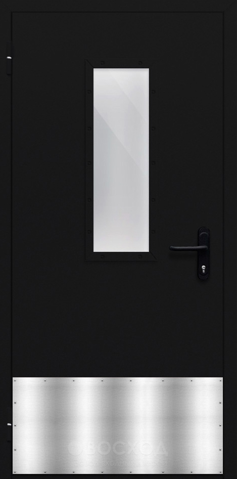 Дверь однопольная с отбойником из нержавейки №15 создана для помещений с интенсивной эксплуатацией, где важно сохранить аккуратный внешний вид и долговечность конструкции. Основой служит холоднокатаная сталь толщиной 1,5 мм, усиленная профильными трубами и противосъёмными штырями, благодаря чему дверь устойчива к нагрузкам и сохраняет жёсткость. Особое внимание заслуживает отбойник из нержавейки — практичный элемент, который защищает полотно от ударов тележек, ящиков или оборудования, продлевая срок службы и избавляя от лишних ремонтов. Внешняя и внутренняя поверхность покрыта нитроэмалью, стойкой к царапинам, перепадам температур и влаге, что позволяет двери долго сохранять свой первозданный вид. Заполнение полотна базальтовой плитой повышает тепло- и шумоизоляцию, а два контура уплотнения и термоактивная лента создают надежный барьер от дыма. Это решение для тех, кто ценит прочность, безопасность и продуманную функциональность.