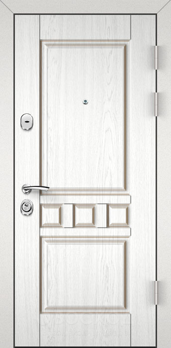 Эта модель сочетает надежность стали и аккуратный внешний вид, который обеспечивают накладки из МДФ с защитным покрытием. Такой материал устойчив к царапинам, не выгорает и легко переносит перепады температуры, сохраняя первоначальную фактуру долгие годы. Конструкция двери усилена ребрами жесткости и листом металла толщиной 2 мм, благодаря чему она не деформируется и уверенно справляется с нагрузками. В средней части стоит отметить «Стальную уличную дверь №3», которая одинаково уместна в частном доме, городской квартире или офисе. Два контура резиновых уплотнителей помогают сохранить тепло и снизить проникновение шума, а при необходимости можно дополнить конструкцию плитой утеплителя. За безопасность отвечают турецкие замки Kale Kilit: верхний сувальдный и нижний цилиндровый, каждый с тремя стальными ригелями. По желанию дверь можно дополнить зеркалом, коваными элементами или современным видеодомофоном, превратив ее в стильный и функциональный элемент фасада.